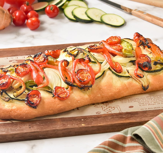Masa fina y crujiente, con verduras de temporada y el sabor de casa.